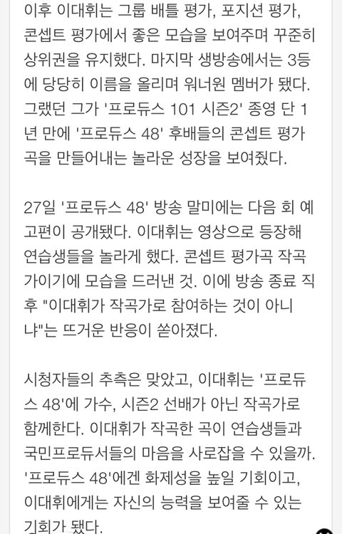 전 시즌 연습생에서 다음시즌 작곡가... 진짜 대단하다