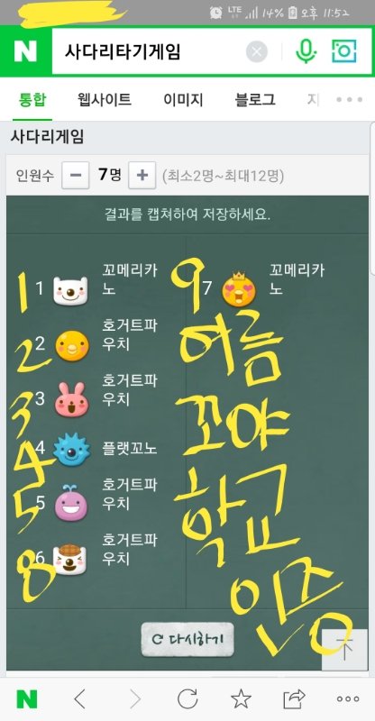 공정하게 주기 위해 초록창 사다리타기 했다꼬☺