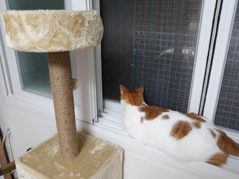 댓글을 보고 창가로 캣타워를 옮겼음.