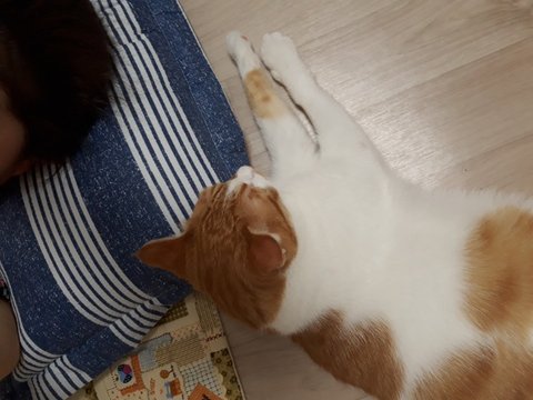 어찌나 발을 열심히 닦던지 귀엽기도 하고