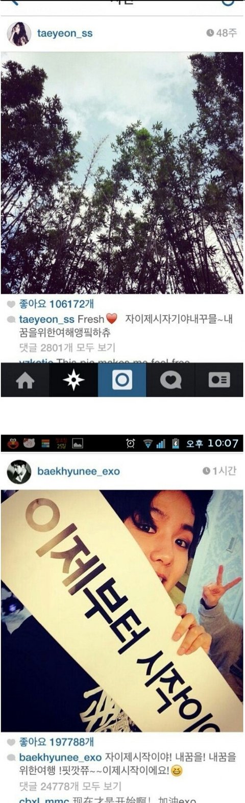 태연이 5월22일에 올린 인스타스토리를 따라서 2일후 5월24일에 백현이 밀린숙제라며 뜬금없이 인스타영상 올림