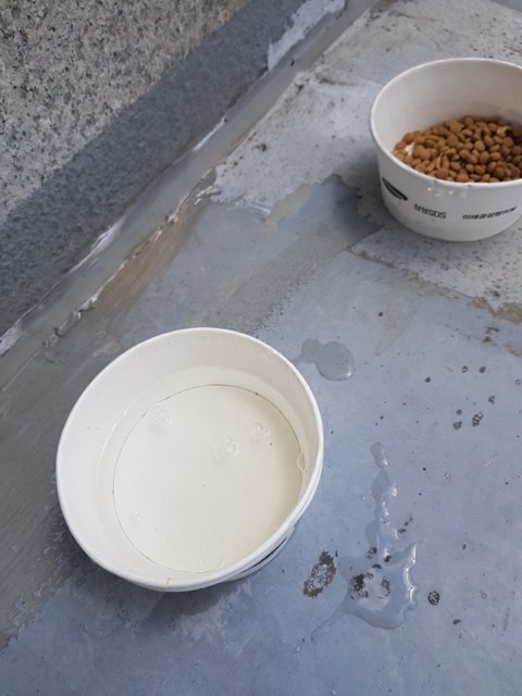 누가 담뱃재같은걸 물그릇에 뿌려놨길레 새걸로 갈아줬습니다