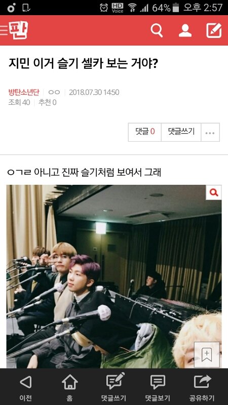 지민 이거 슬기 셀카 보는 거야?