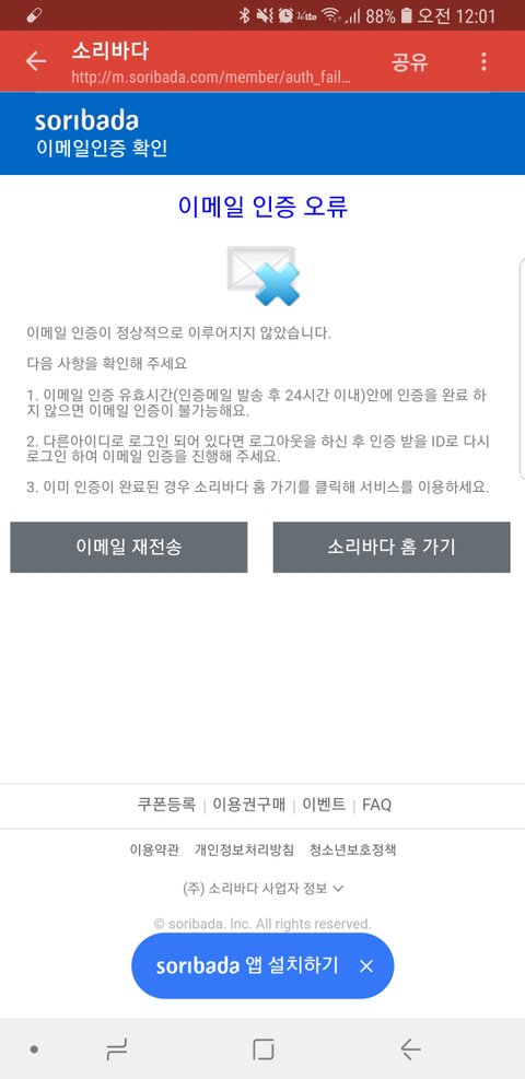 나 얼굴책 새 계정으로 다운받고 툽하려니까 멜 인증하래서 이멜 주소링크 누르면 인증실패 이것만 뜬다
