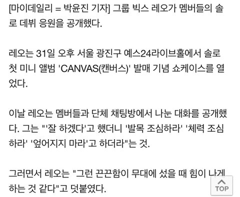빅스 멤버들의 레오 솔로 데뷔 응원