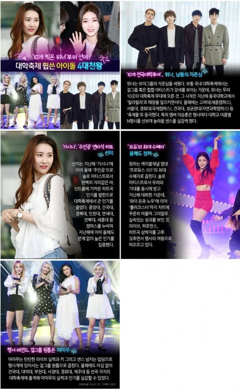 사실 대학축제는 남돌을 잘 안부름 그래서 위너가 10개나 돈게 기적 수준인거임ㅋㅋㅋ작년 동국대에서 남돌 위너를 섭외함 동국대 축제에 사람 그렇게 많이 모인게 처음ㅇㅇ 심지어 여돌도 없이 그정도로 많이 오고 떼창이 오짐 여기저기 동국대 축제 꿀잼이였다고 소문 돌기 시작함 그리고 그 다음해인 올해 축제에 위너 섭외하는게 치열해짐 대놓고 오피셜로 섭외 힘들었다고 말한 학교도 있고 ㄱ에 와서 섭외과정 썰푼 건대총회도 있음
