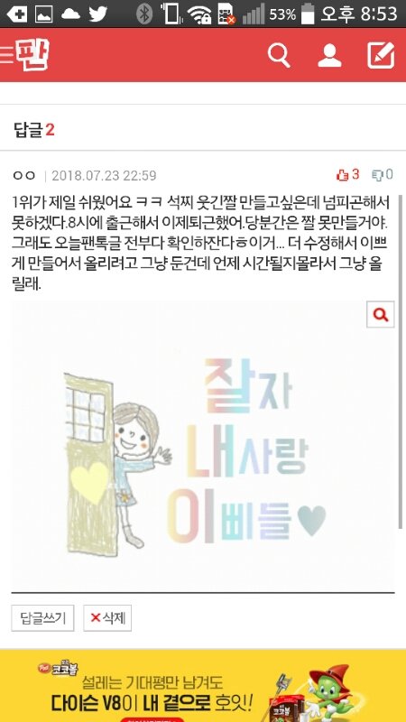 진짜 간만에 열시전에 퇴근해서 팬톡와보니