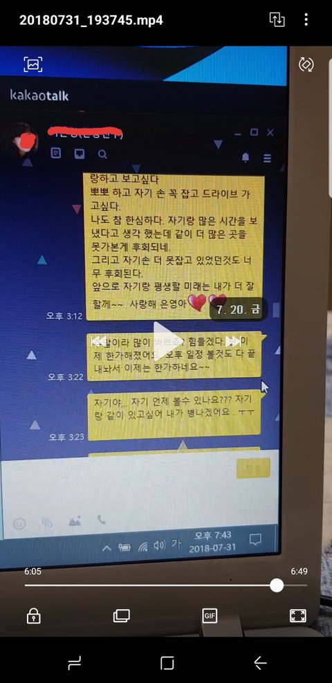 이상했지요. 저한테는 전화하거나 제 이름을 부르지 톡에 자기야라고 안 하거든요. 오늘보니 상간녀한테 보내는거였어요.