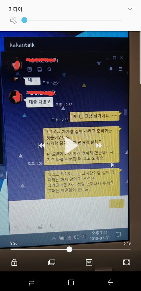 톡 주고 받은거 보면 남편이 상간녀한테 엄청 매달리고 있어요. 상간녀는 뚱하게 반응하다가 한번씩 사랑한다고 그러고 밀당하는거 같기도 하고 어장관리하는거 같기도 하네요.