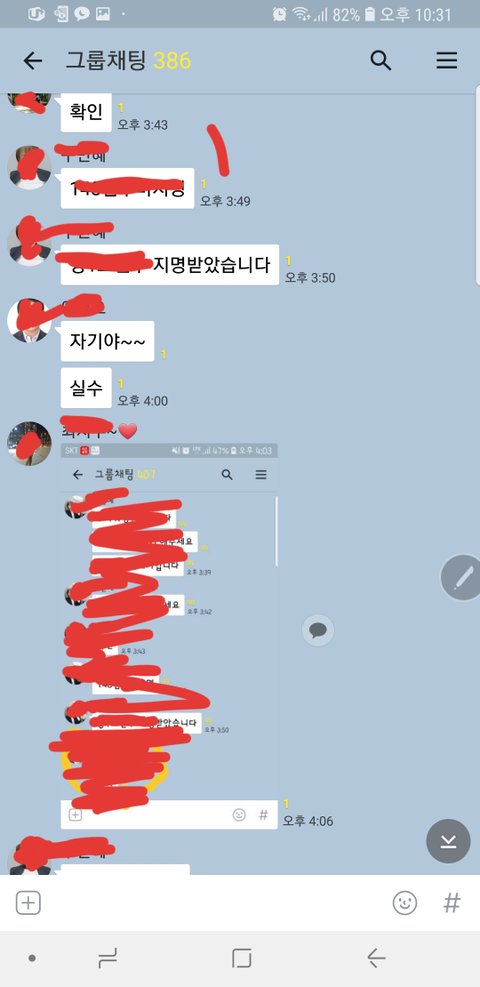 근데 전체 카톡방에 남편이 자기야~~라고 올렸어요.