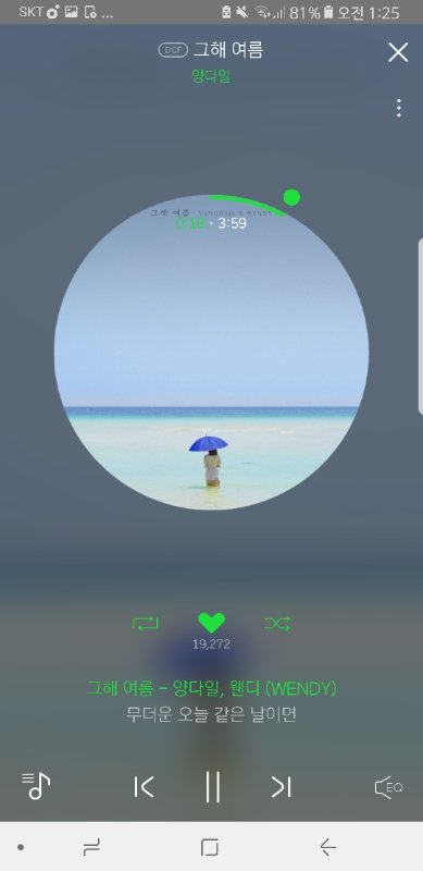 이 노래 진짜 좋은데 왜 순위가 낮은지 모르겠어ㅠㅠ 도입부에 나오는 파도소리도 너무 좋고 여름에 듣기 딱이거든,, 여름에 이별 노래는 약간 생소할 수 있지만 양다일과 웬디의 조합은,, 난리났지 정말. 아무도 없는 바다에서 듣고 싶은 노래야!