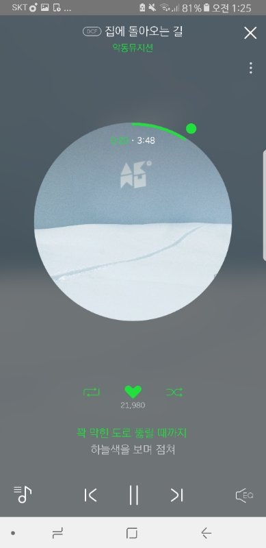 (。•́︿•̀。) 밤에 힘든 몸을 이끌고 집에 가던 내 모습이 생각나기도 하고ㅋㅋㅋㅋㅋ 이 노래도 진짜 많이 들었어ㅎㅎㅎ