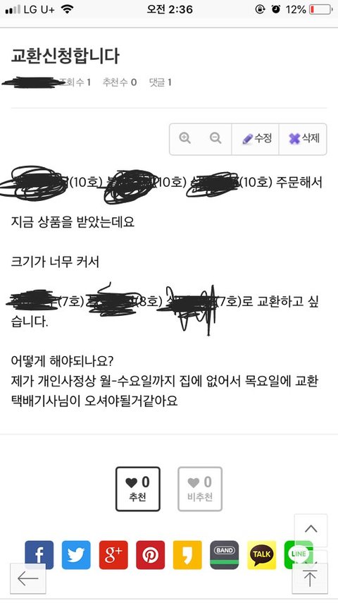 기분이 나빠서 정말... 네, 인터넷판매하면서 진상고객들 많겠죠. 힘드시겠죠. 이해합니다. 근데 진짜 아무것고 안하고 제대로 잘 교환배송을 했는데, 이렇게 말한다면 어느누구가 기분이 안나쁘겠어요?