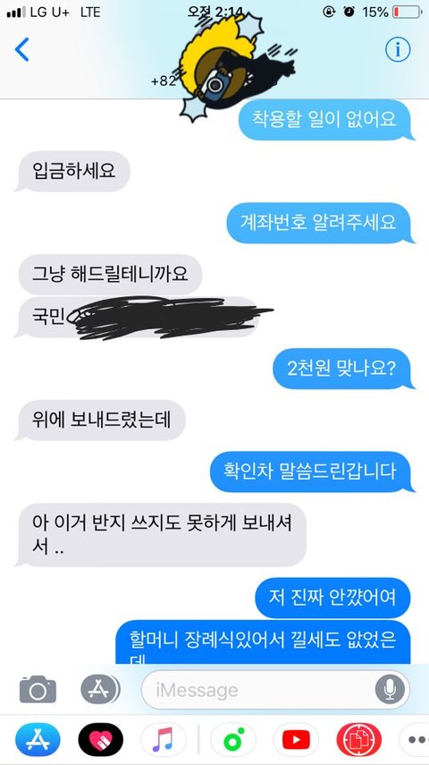 진짜 억울해서 할머니 얘기까지 나왔어요. 그랬더니 알겠습니다 입금하시면 문자주세요 일해야합니다 라고 답이 오더라구요.