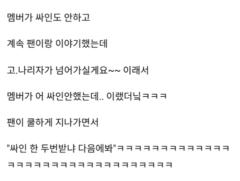 이거 누구 팬싸썰임? ㅋㅋㅋㅋㅋㅋ