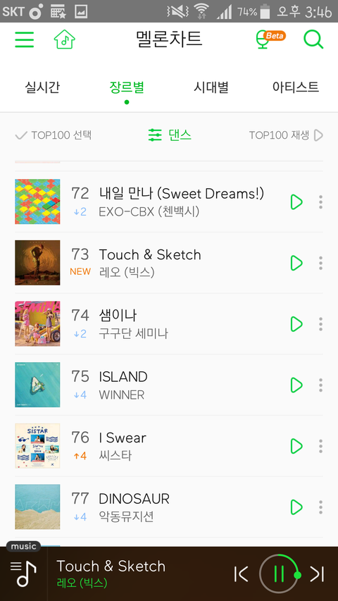 댄스 차트에 있네