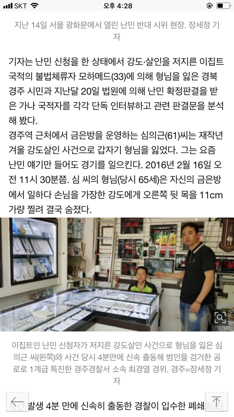 이집트 난민이 경주 금은방에서 사람찔러서 죽임