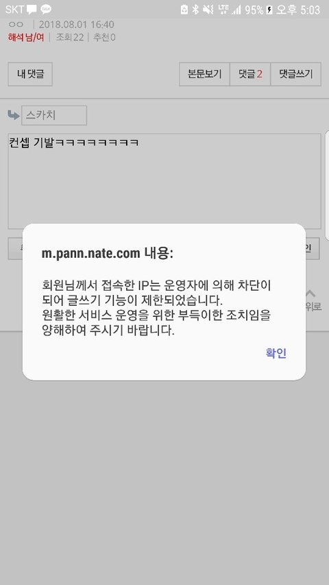 근데 뭐 때문에 차단했는지 고지도 없음