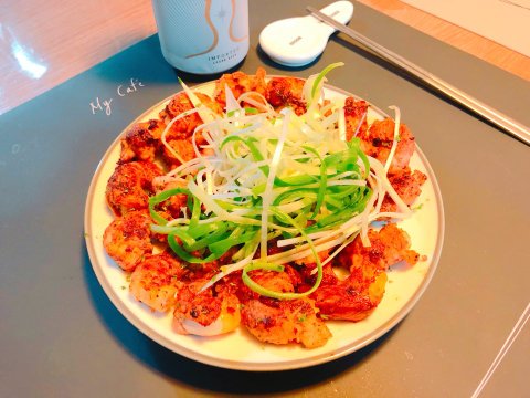 새우에 반죽 입히고 튀긴거에다가 위에 올린 파채 ㅎㅎ 맥주에 아주 기가 막히게 어울림