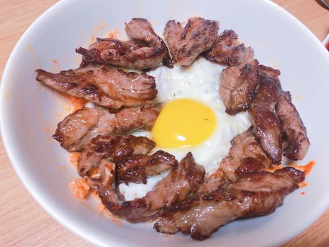 그래요..전 고기가 좋아요..ㅋㅋ 이건 갈비살을 비빔밥 위에 계란 후라이와 올린거ㅎㅎ