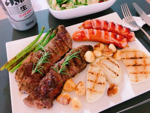 마지막은 최근에 먹은 살치살 두덩어리가 남아서 스테이크 처럼 만들어 봤어요.