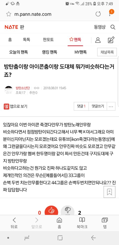 아래글 방탄 춤 어쩌고 여기서 봐(조회수 얼음)