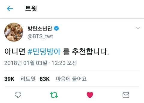 이 트윗 올라오고 나서 ‘민덩방아’ 네글자가 갑자기 세계 실트오르고ㅋㅋ