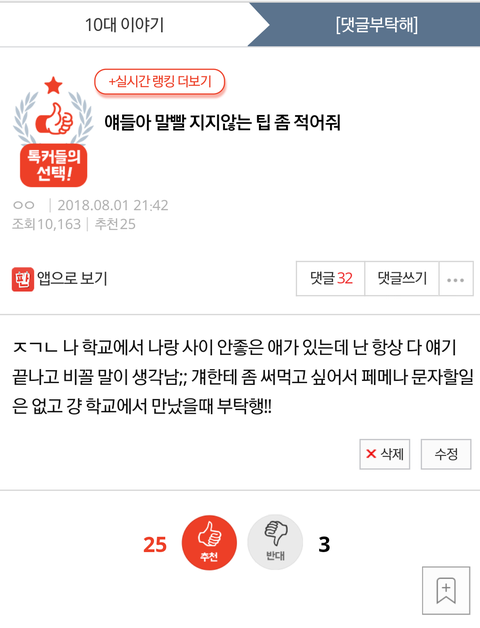 댓글 많은 톡