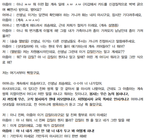 + 다른 곳에서 공무원이 일하는 곳에 가족 구성원이 가서 일 도와주는 거 안되지 않냐고 하셨는데 저는 봉사개념으로 결제만 도와드리는 단순 업무라서 괜찮다고 과장님께 허락받았습니다!