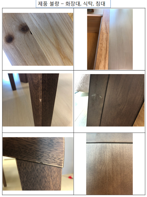 바닥은 찍혔고 새 식탁 안쪽은 스크레치가 발생되었구요. 기사님이 기존 불량식탁의 다리를 때서 붙여주겠다 하여 알겠다라고 설치를 받았습니다.