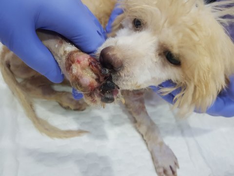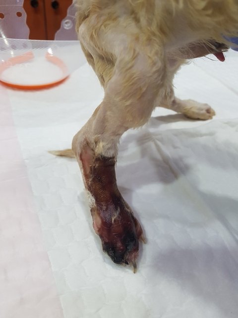 이제 예쁜 응가를 보지만 혈전으로 네다리에 염증이생겨 다리색이 변하며 괴사가 되고 있습니다.