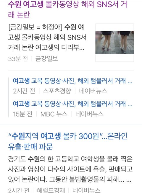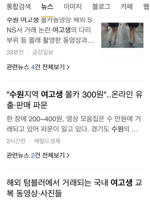 텀블러도 문제인데 구글에 수원 여고생 쳐도 몰카사진 나와 이것도 심각한거같아
