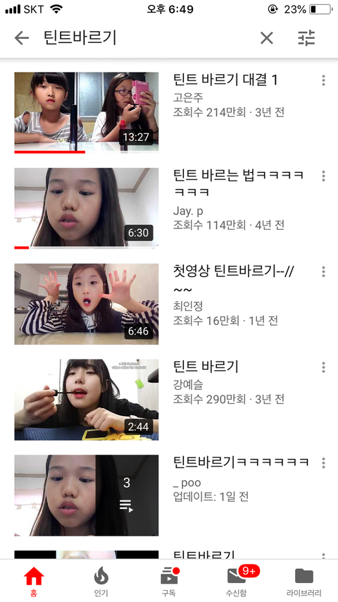 나는 유튜브에 틴트바르기 올리셨던 분들ㅋㅋㅋ 내가 01년생인데 초6때 엄청 많이 봤는데 저분들은 뭐하고 지내실까,,? 판 할수도 있겠지 ㅋㅋㅋ?
