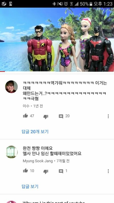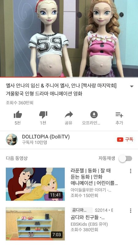 엘사는 울고 있고 스파이더맨이 성폭행하고 있는 영상이 연관동영상으로 뜨더군요.