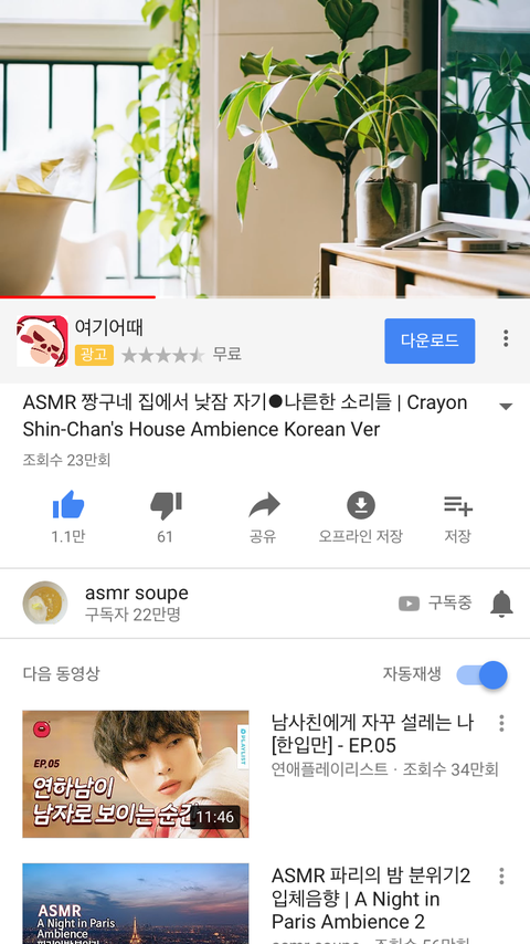 asmr인데 추억돋는것도많고 분위기있는거 진짜 많고 잠잘때 듣기 딱 좋다 ㅠㅠ 나같은경우에는 원래 asmr 안좋아했는데 이분꺼는 우울할때 많이 도움됐어 ㅠㅠㅠ 이번에 짱구 asmr 나온게 역대급인듯..