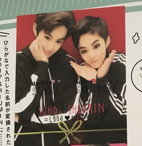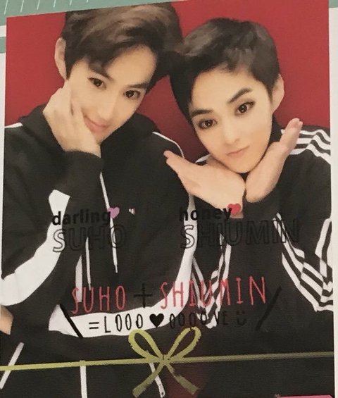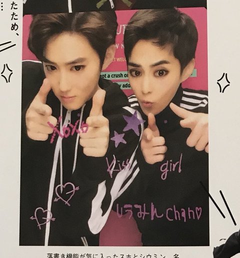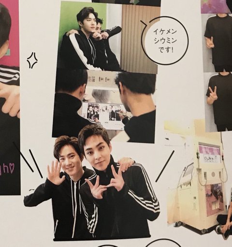 시우민 아디다스 입고 멤버랑 스티커사진 찰칵