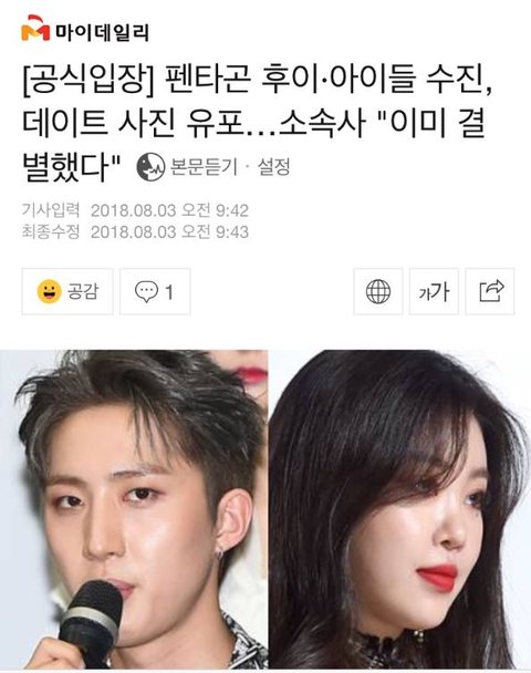 뭘 결별했대ㅅㅂㅋㅋㅋ끝까지 아니라고 해야지