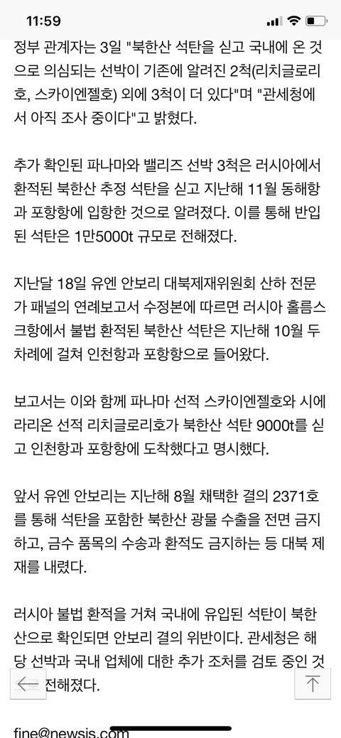 2. 벗뜨 우리나라에 북한산 석탄이 어떤 경로인지(!) 무려 세 번이나 들어와부림