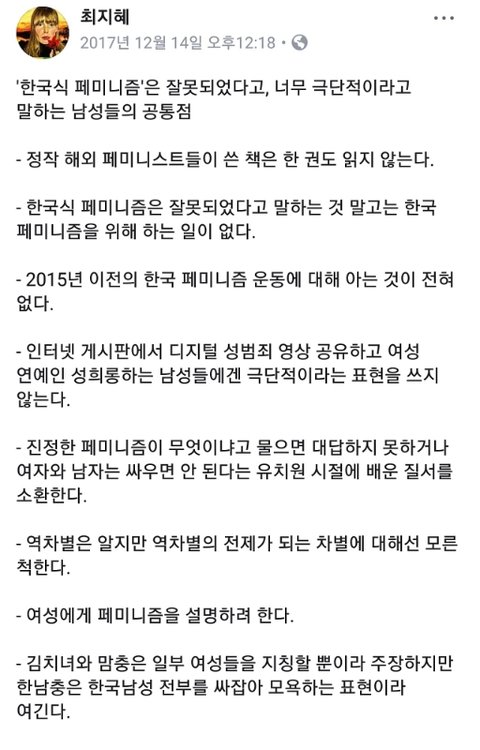페미니즘 "한국페미니즘..ㅉㅉㅉㅉ"