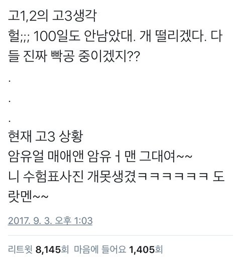 ㅋㅋㅋㅋㅇㅈ 고3이아니라 초3처럼 놈 ㅅㅂ