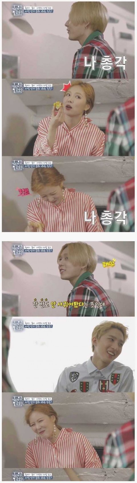 이던말에 빵터지는 현아와 후이