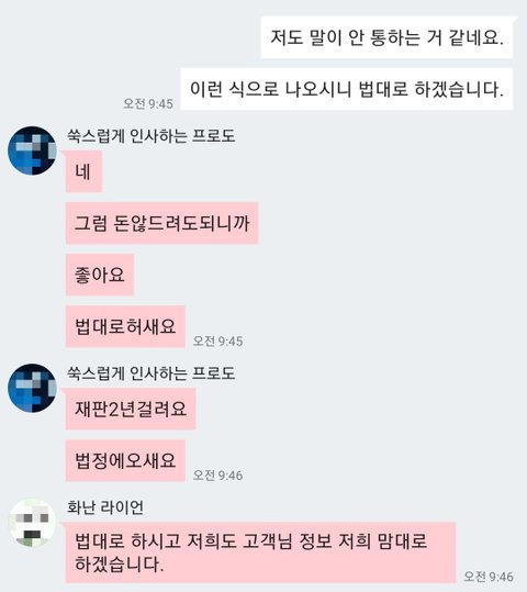 아래는 그 사람들과 카톡한 내용 일부입니다. 정말 극히 일부에요.