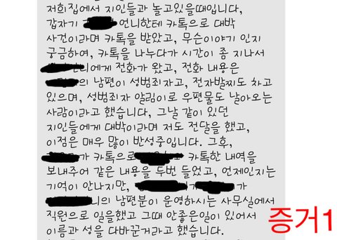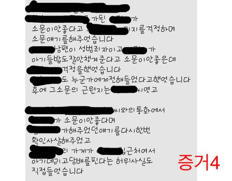 저는 스폰서가 있어 스폰서와 잠자리를 걸려 남편에게 폭력을 당했다 “ 라며 헛소문으로 인하여