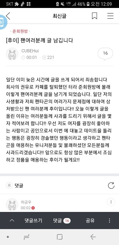 뭐지 뭐지 했는데 후이 아니었음ㅋㅋㅋㅋㅋㅋㅋㅋㅋㅋ 카페 관리 안하나봐