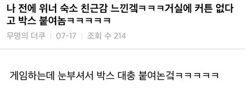 1. 게임하는데 눈부시니까 박스 대충 붙여놈