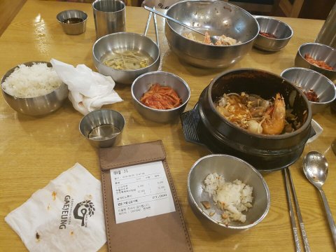 언니랑 순두부찌개랑 육회전주비빔밥 시켜서