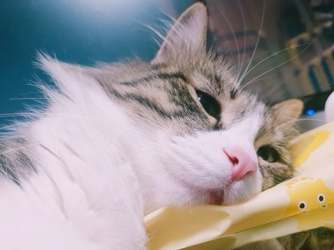 " 음 . . . 집사 품은 한 여름에는 많이 덥구만, 물티슈를 베게로 좀 삼겠네. 집사. "