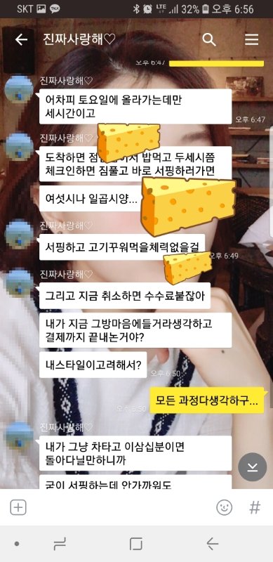 여자친구와 11일날 여행을가기로했습니다. 1박2일로 강원도 속초에 서핑을하러가기로했습니다. 현재 여자친구는 친구와 거제도로 여행을 갔다오는 길이고 저와의 여행은 7일정도남았습니다. 숙박에 예민한 여자친구고 시간도얼마안남아 방을 빨리잡으려고했습니다. 여자친구에게 물어서 어디로 잡냐고하고 저는 정말 마니 여자친구를 사랑해서 잘보이고싶어서 지금 거제도에서 오는데 피곤하니깐 자고있어라 방은 내가 알아보겠다 라고 했습니다. 여자친구는 좋다고 나피곤하니 알아서 찾아바 방은 자기 믿는다고 하고 잠을잤습니다. 저는 3시간동안 방을 찾았습니다. 어플로 방잡는건 처음입니다. 여자친구는 여행을 자주 다녀서 이런게에는 엄청나게 잘해서 더욱더 신경써서 찾고있었습니다. 서핑하는곳에서 가장가깝고 깨끗하고 저렴한곳 (여자친구가 서핑하면 늦게 체크인하면 돈아까우니 저렴한곳을 어필) 을 찾고있었습니다. 사장님들에게 저나도 하고 방은 깨끗하냐 침실커버는 쌔거냐 물어보고 테라스가 보이던데 나무 테이블에서 음식을 먹을수있냐는등 많은건을물어보고 고민을 정말 많이했습니다. 그렇게 찾다찾다 제 기준에서 맞는곳을 찾았고 방이 한개밖에 남지않아 서둘러 예약을 했습니다. 정말 들뜬 마음으로여자친구가 일어나길 기다리고있었습니다.