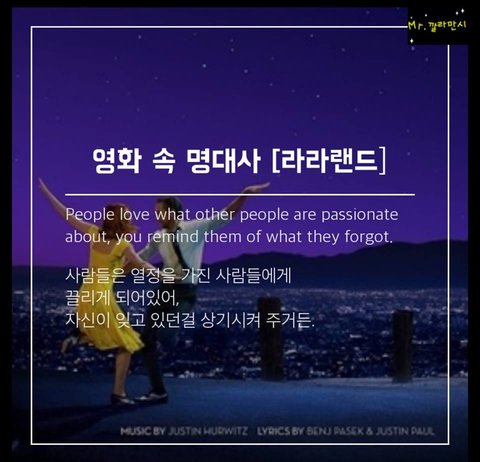 사람들은 열정을 가진사람들에게 끌리게 되어 있어,자신이 잊고 있던 걸 상기시켜 주거든. [영화 라라랜드 中]말이 되는 영어의 첫 시작, 윤선생 무료체험 신청하고 시원한 간식 받자!