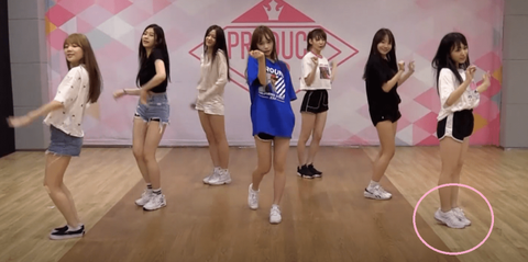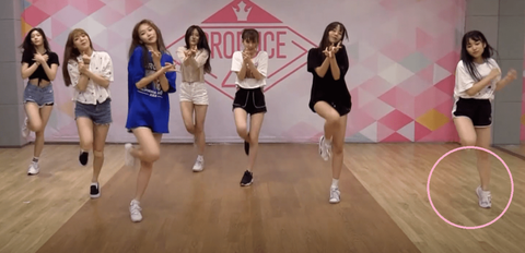 야부키 나코는 춤추면서도 다른 연습생과는 다르게 까치발 들면서 스텝 밟고 있습니다.